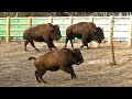 ある冬の夕暮れ。元気に走り回るアメリカバイソンたち。