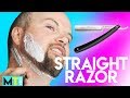 Men try shaving with a straight razor for the first time! Before they shave themselves, they have to practice on their friends!